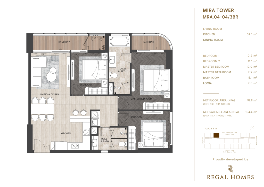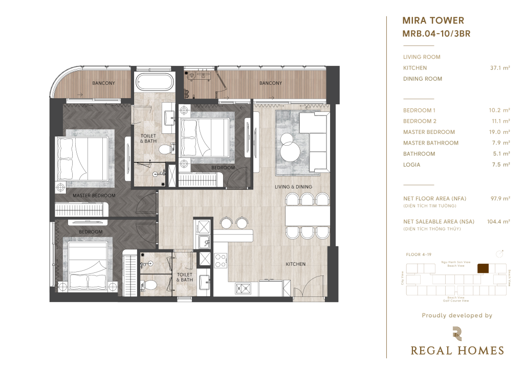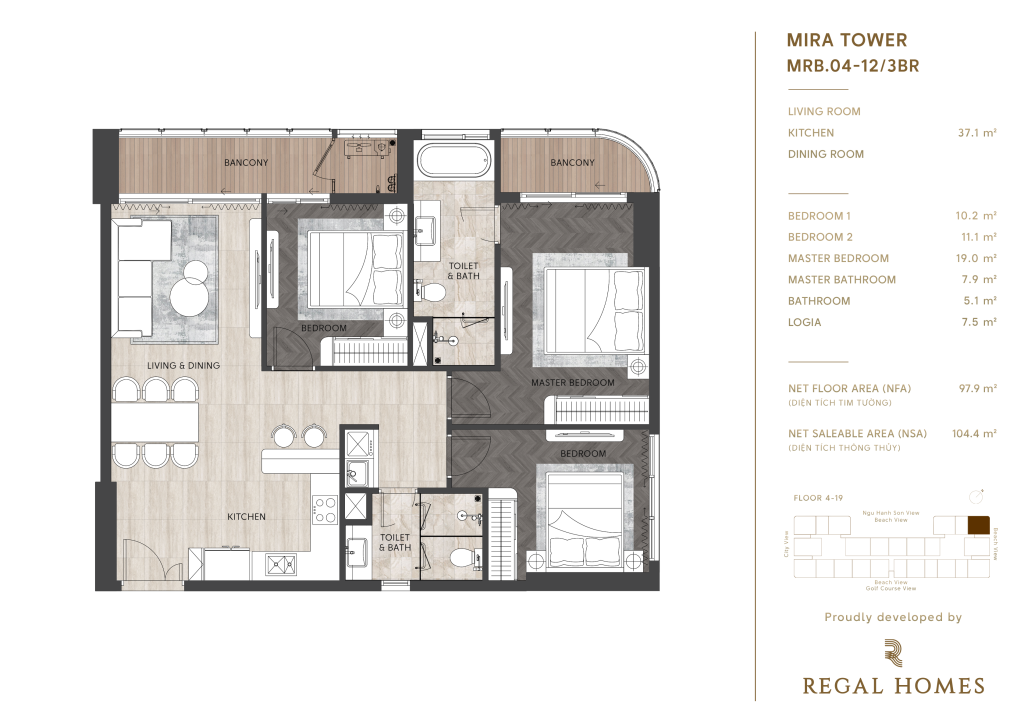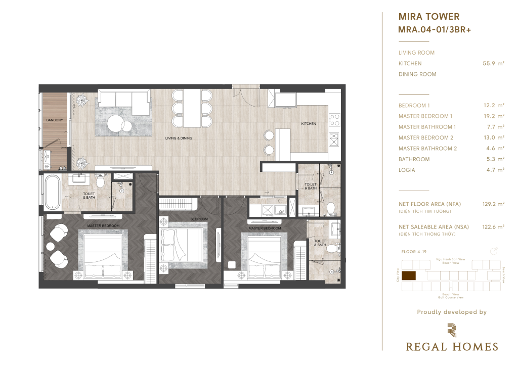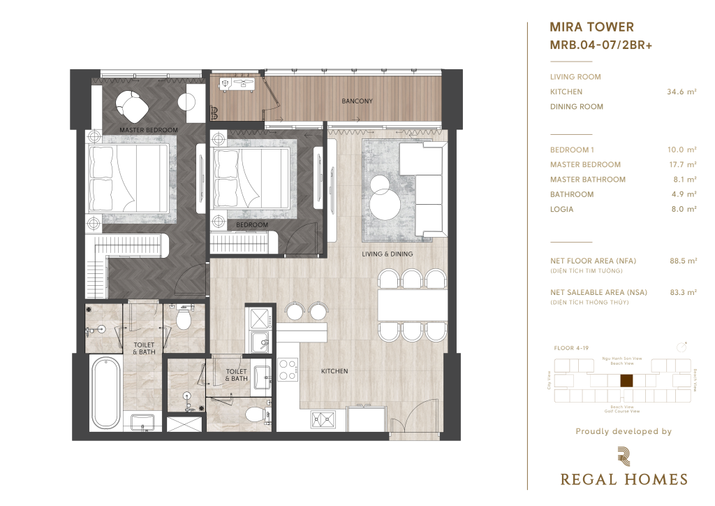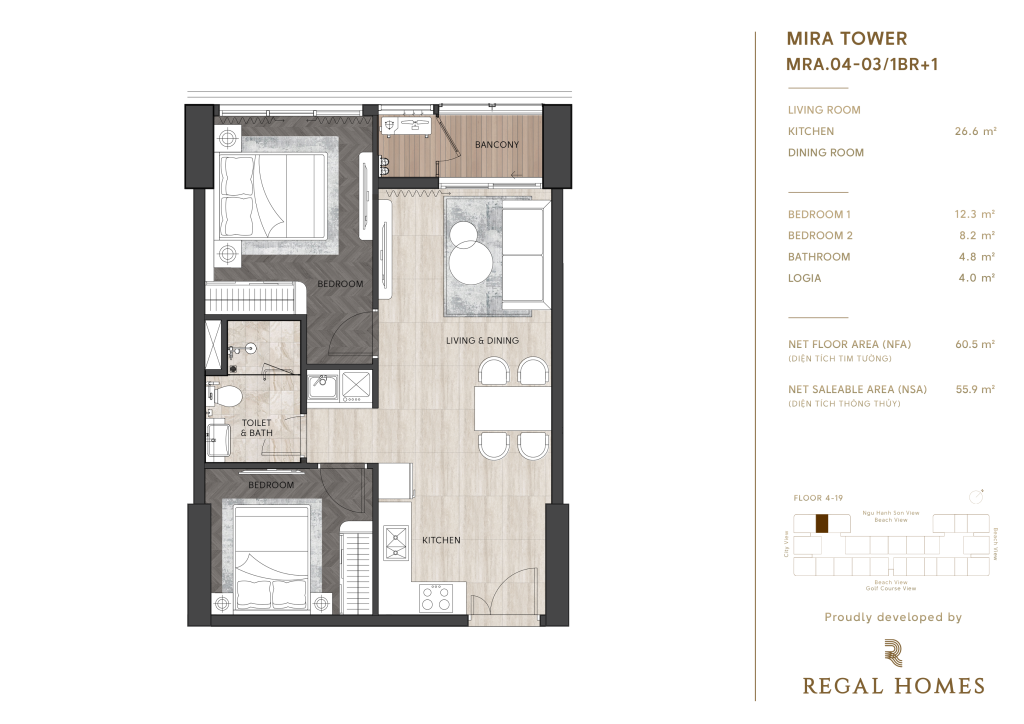 • Tầng 4 – 19: khu căn hộ