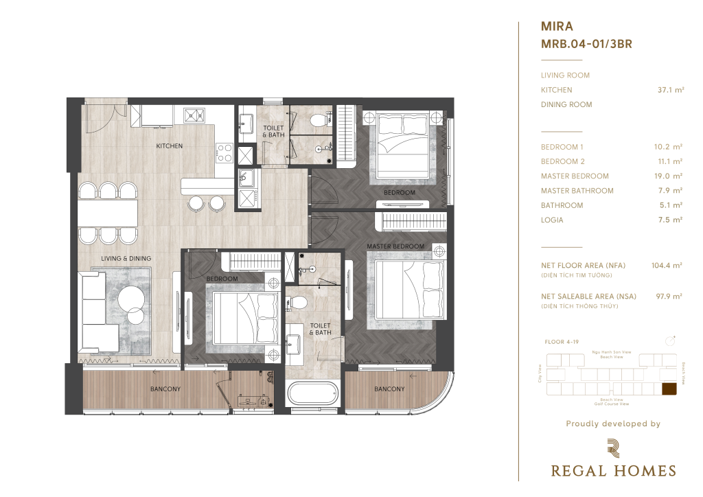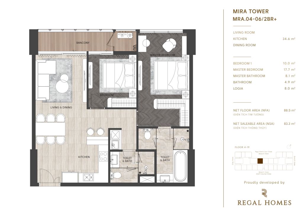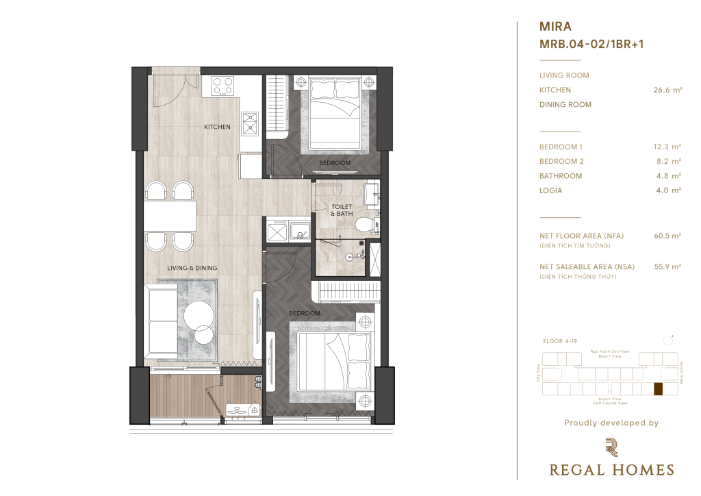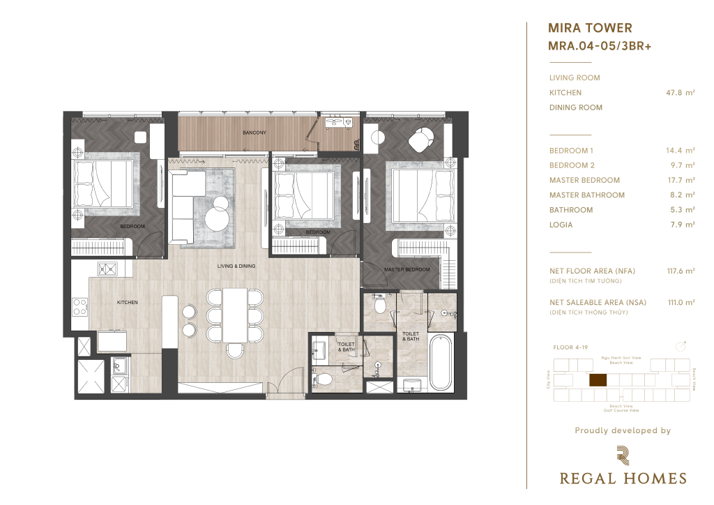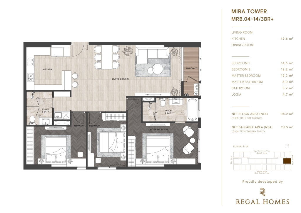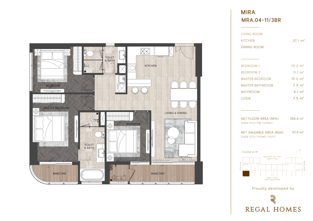• Tầng 4 – 19: khu căn hộ